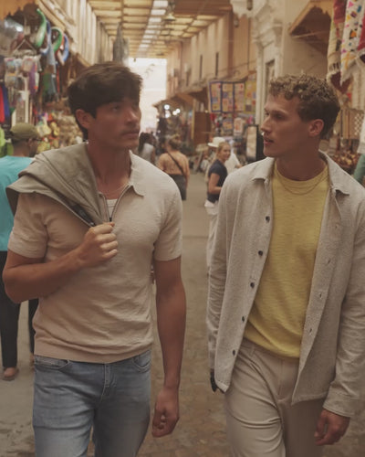 Warm, natural colours define the collection. Soft earth tones, muted blues and refined neutrals create balance and versatility. These sun faded tones feel effortless and confident, making it easy to combine pieces into a consistent wardrobe. The result is a clean, masculine look that feels natural and remains relevant throughout the season.